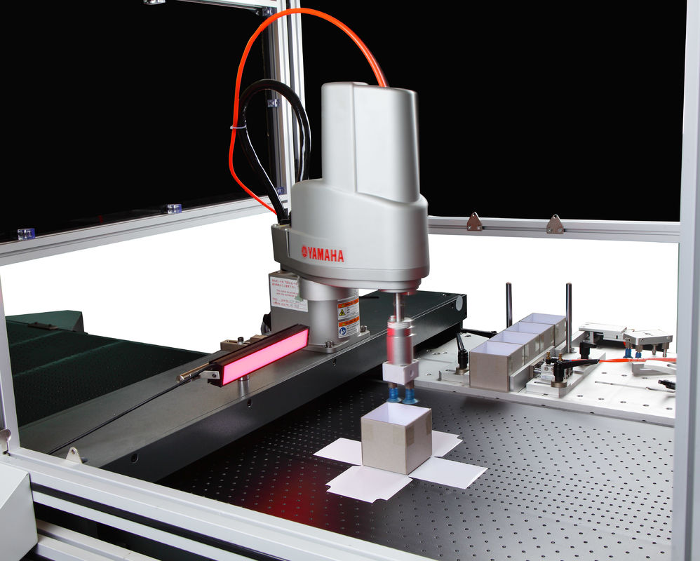 1. ग्रे बोर्ड बॉक्स को स्पॉट करने के लिए SCARA (सेलेक्टिव कंप्लायंस YAMAHA रोबोट आर्म)
